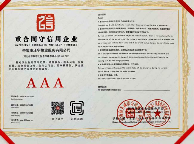 企業(yè)信用評價AAA級信用企業(yè)